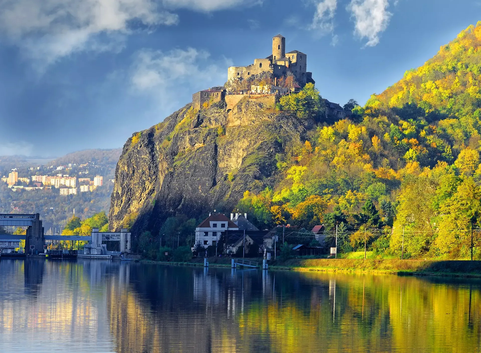 Majestátný Střekov se vypíná na černé skále, čnící z hladiny Labe do výšky sto metrů. Za deštivých nocí se prý po útesu škrábe duch mladé dcery hradního pána, která se zde kdysi hlubokým skokem rozloučila se životem.